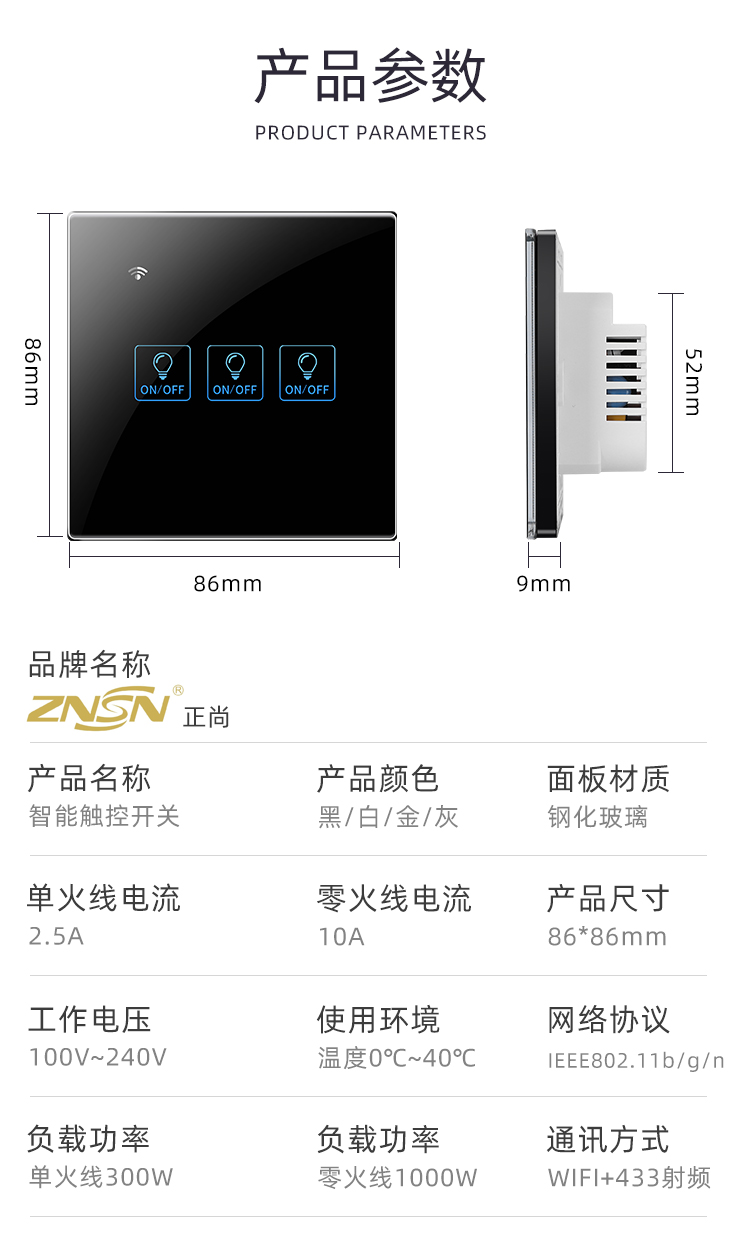 尺寸(高*宽*厚):86毫米*86毫米*35毫米